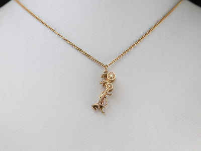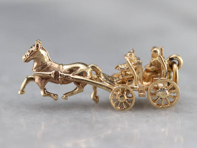 This gorgeous vintage charm features moving wheels and plenty of lively details. Perfectly sized to wear on the wrist or chain as a unique pendant!