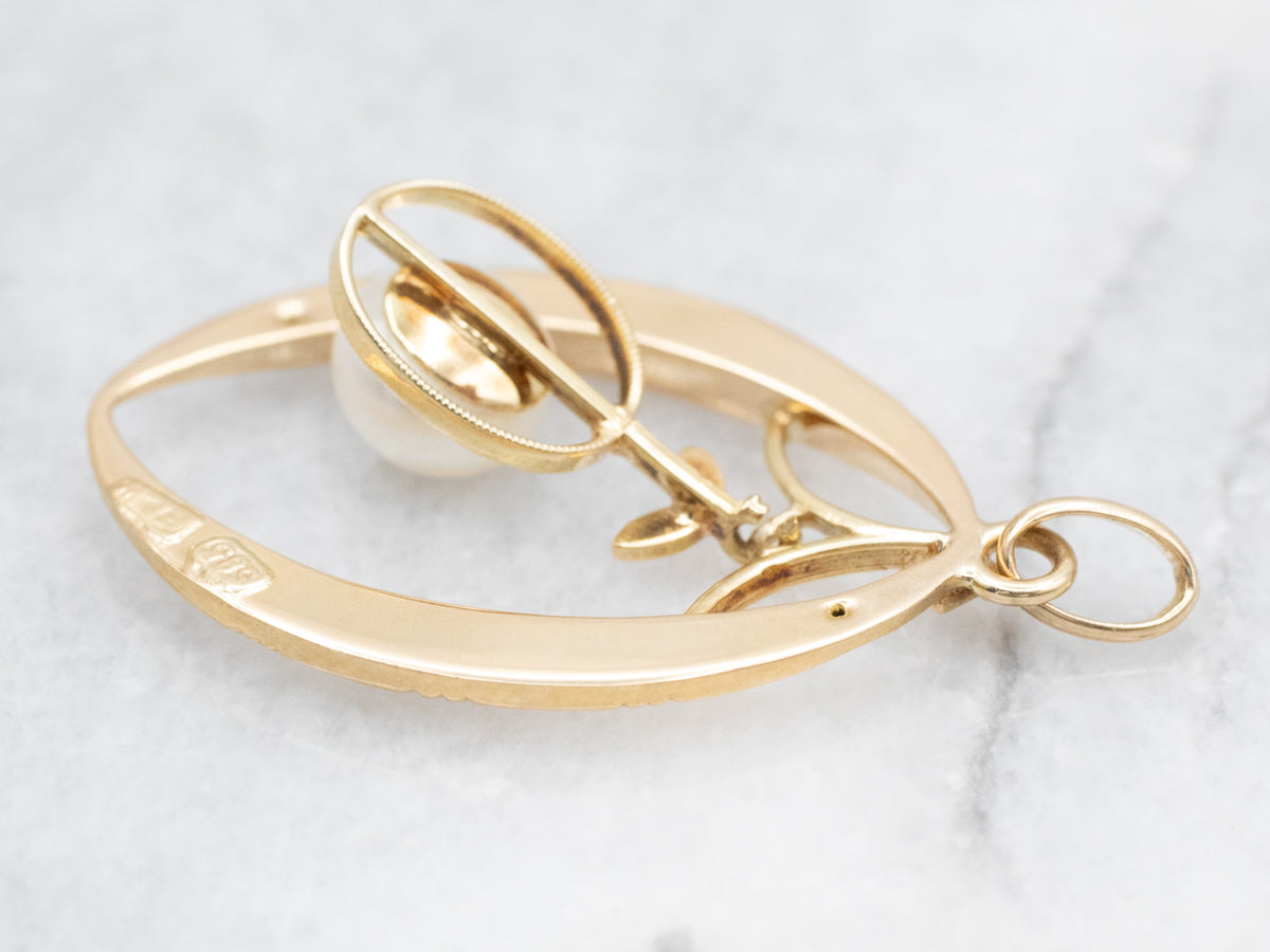 Vintage Seed Pearl and Gold Pendant with Swinging Pearl Center