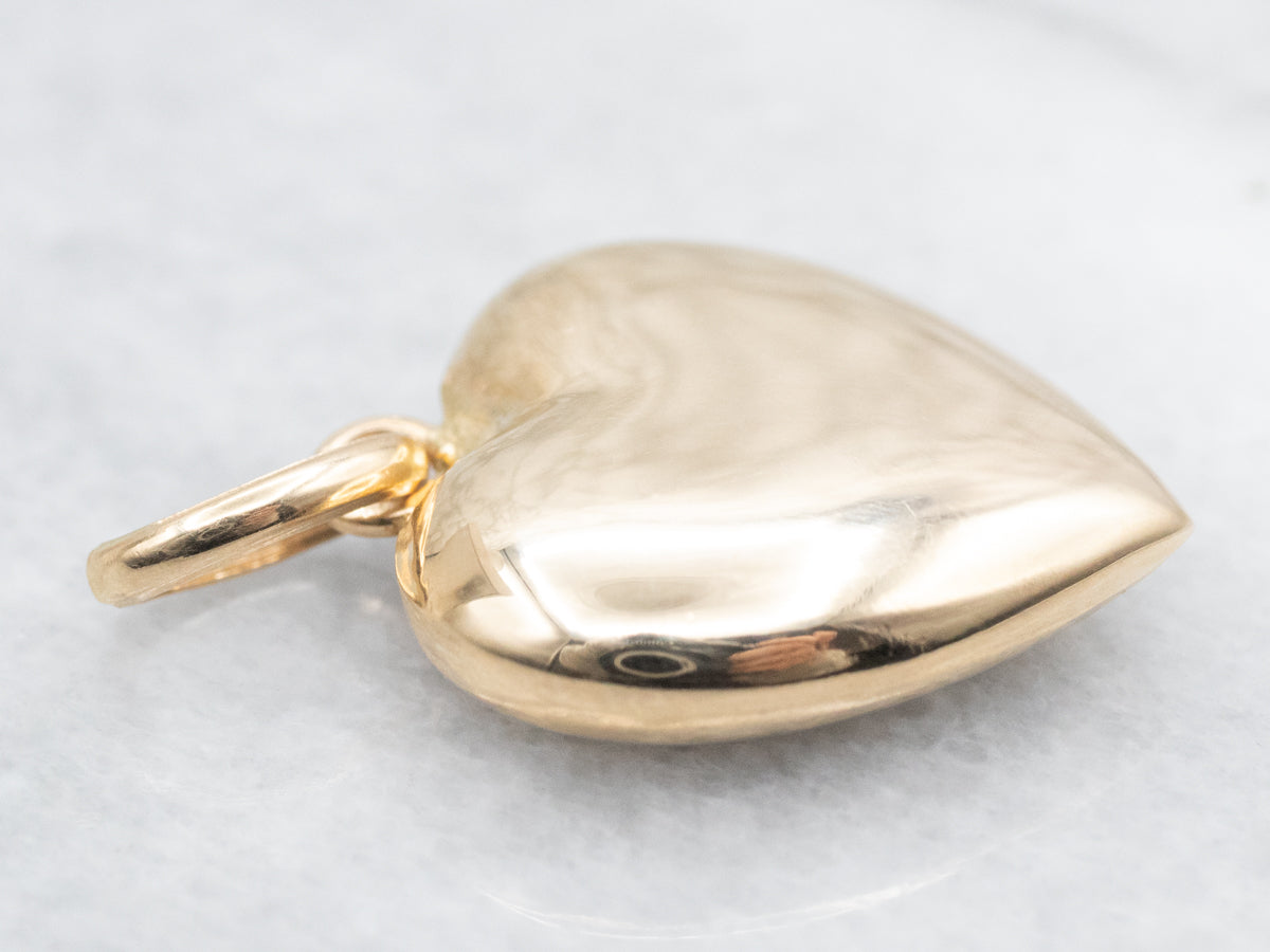This charm is made of yellow gold, giving it a timeless quality. The puffy heart design adds a touch of whimsy to any accessory. This charm is perfect for adding a loving touch to any necklace or bracelet!