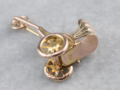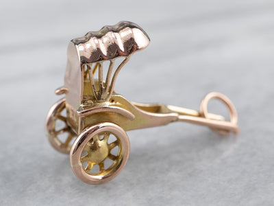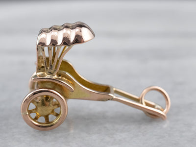 Rickshaws are a classic symbol of Southeast Asia, and here's a great way to remember your travels in them! This charm features spinning wheels and is solidly crafted in 14k gold.