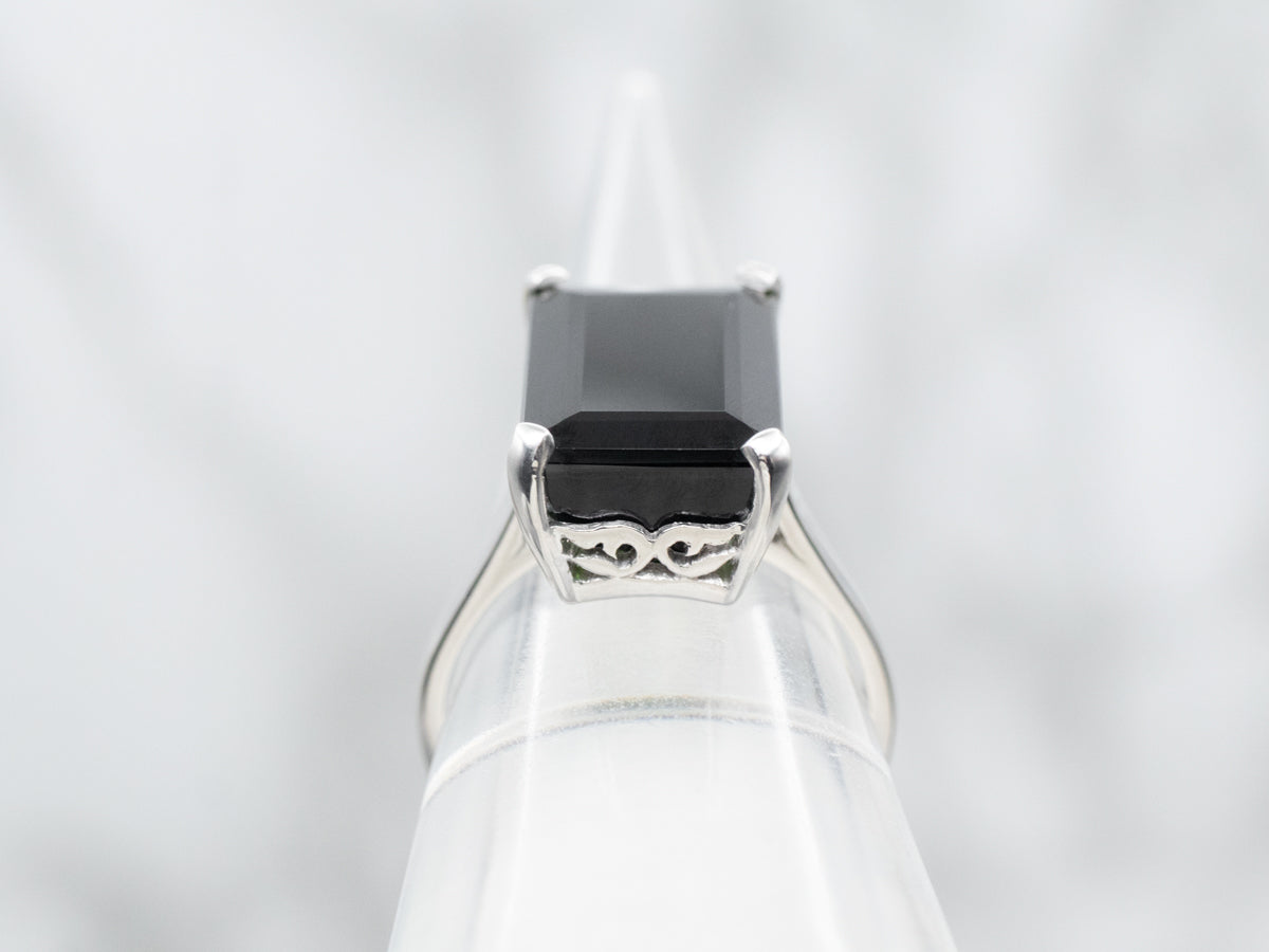 We set this striking rectangle-cut green tourmaline in a sleek platinum shank, creating a timeless solitaire design. The vibrant green of the tourmaline is the perfect focal point, its rich hue contrasting beautifully with the lustrous platinum. Expertly crafted, this ring offers a sophisticated and elegant look, ideal for those seeking a unique yet classic piece.