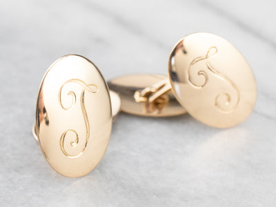 These highly polished 18 karat gold Gustaf Dahlgren and Company cufflinks are the very definition of sophistication. The simple shape is an elegant frame for the classic "T" monogram at the center.