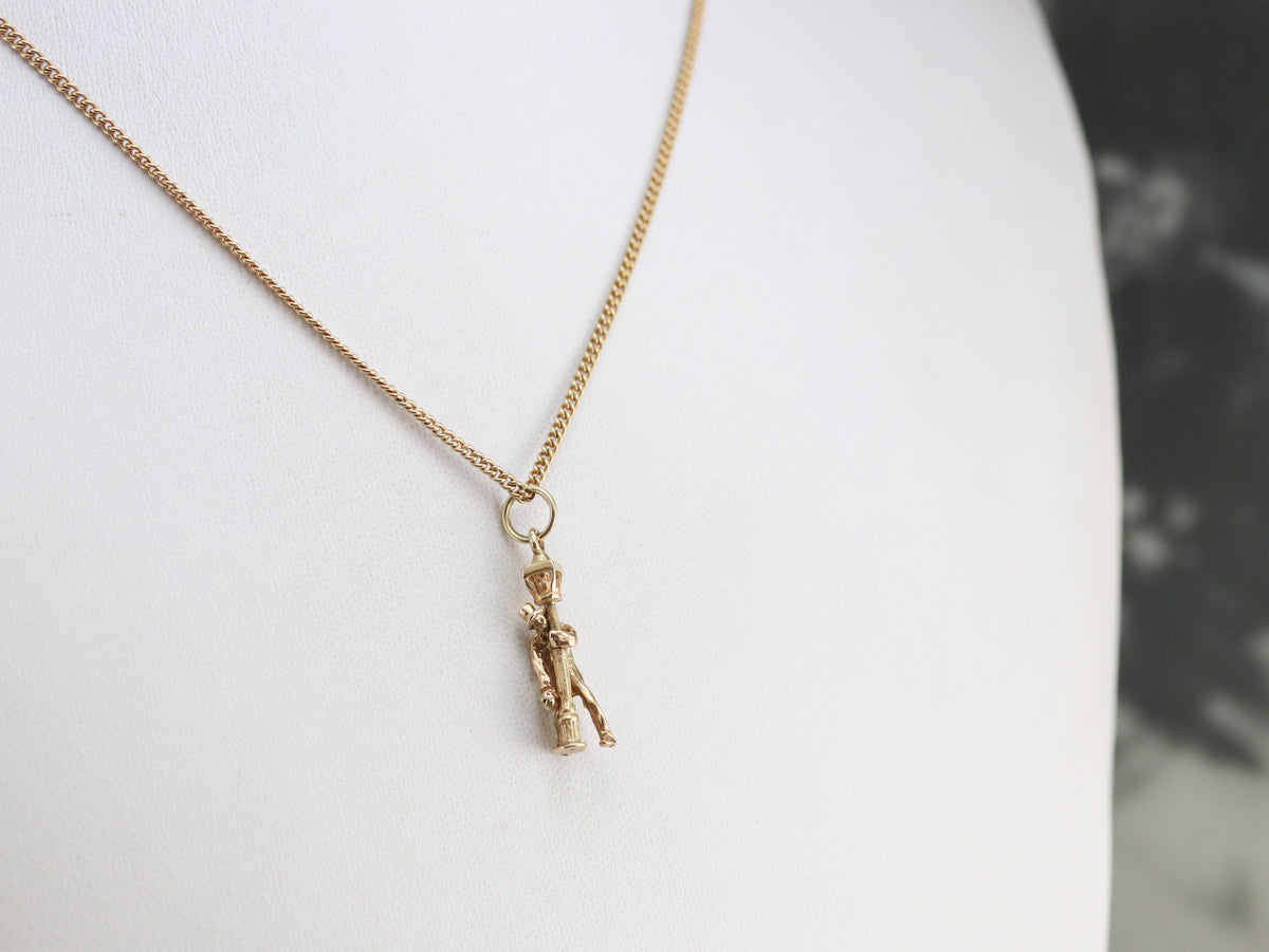 Well, this little groom sure had a good time at his reception! Crafted of 14 karat yellow gold this drunken groom holds and sways along a gaslit lamp post, perfectly polished and ready to wear or gift!