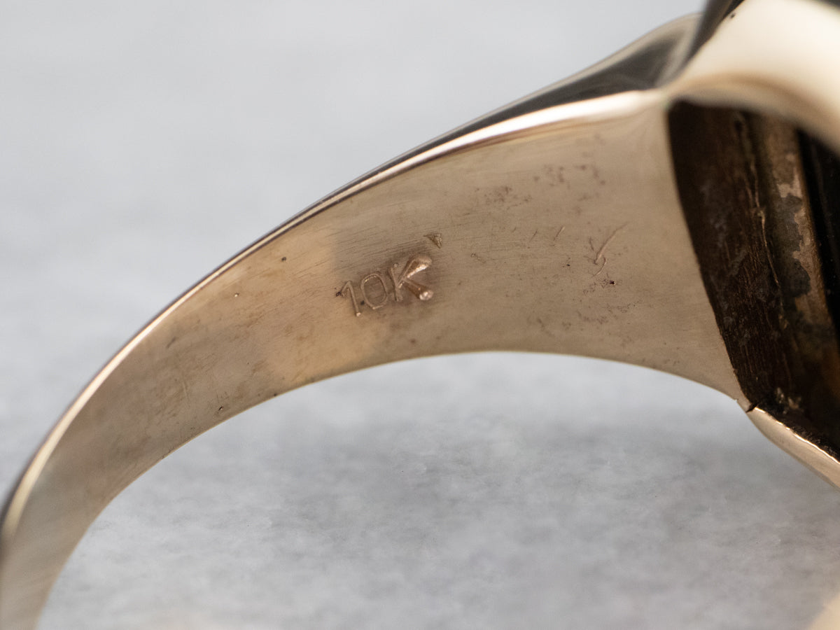 Metal: 10K Yellow Gold Gem: Black Onyx Gem Measurements: 15.7 x 11.0 mm, Rectangle Ring Size: 12.50 Marks: “10K” Stamped on the inside band