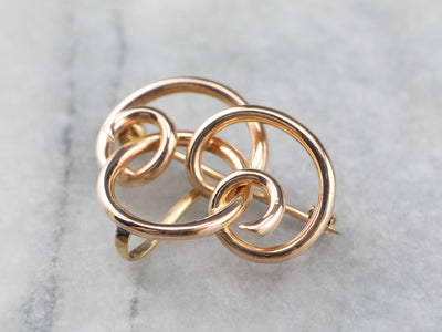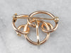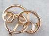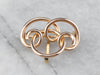 A classic of the early 20th century, this versatile brooch has a hook on the back. This hook, hidden from view, can be hung with a pendant, charm, or small pendant watch! Beautiful scrolling filigree provides a nice counterpoint to the soft finish of the warm 14 karat rose gold.