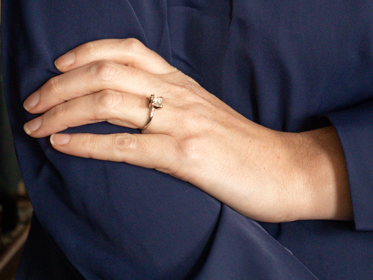 Featuring a round brilliant diamond we set in the center, this engagement ring is flanked by two diamonds for maximum sparkle. The illusion head protects the diamond while giving a classic vintage profile. Make your proposal memorable with this beautiful diamond engagement ring.