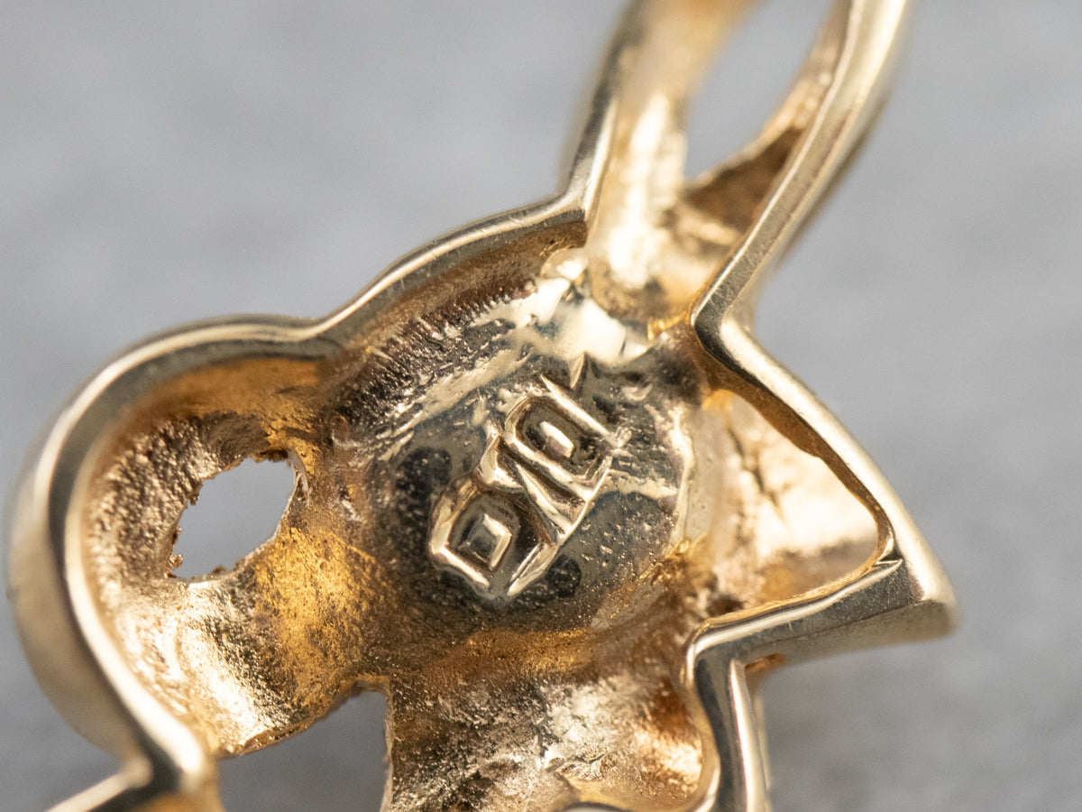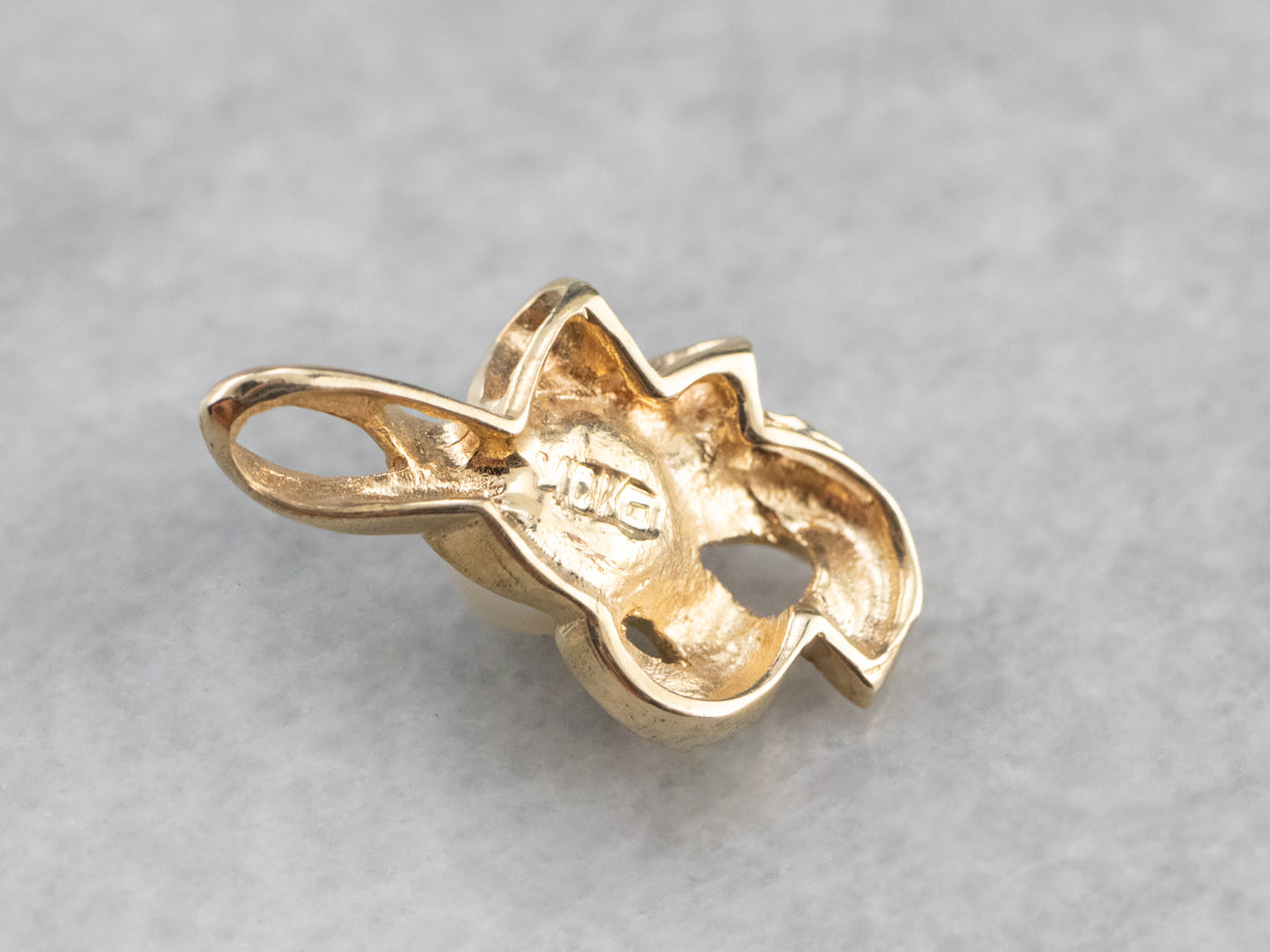 This pearl pendant looks like a little scrolling piece of golden ribbon! With a simple bail and at a great size, this vintage piece is ready to wear or gift!