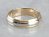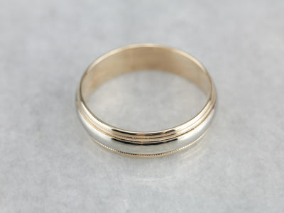 This shinning vintage band is crafted from the highest quality materials: hefty yellow and white gold that is perfectly polished and shines with light! Weighty on the finger, comfortable and substantial, this two-tone, mixed metals piece is an excellent choice for a lady or a gentleman.