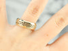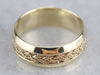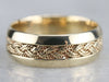 The workmanship of this vintage band is incredible. Decorative braid work wraps around the center, free floating in a channel of polished gold. Gorgeous alone or worn with another piece, this features a smooth and comfortable inner surface and is sized to be suitable for a larger hand.