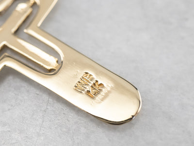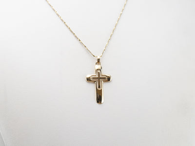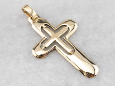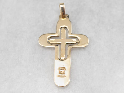 This cross pendant is simple and sleek, crafted of 14 karat yellow gold. Perfectly polished, this piece is a great size for wearing everyday, and is a true classic.