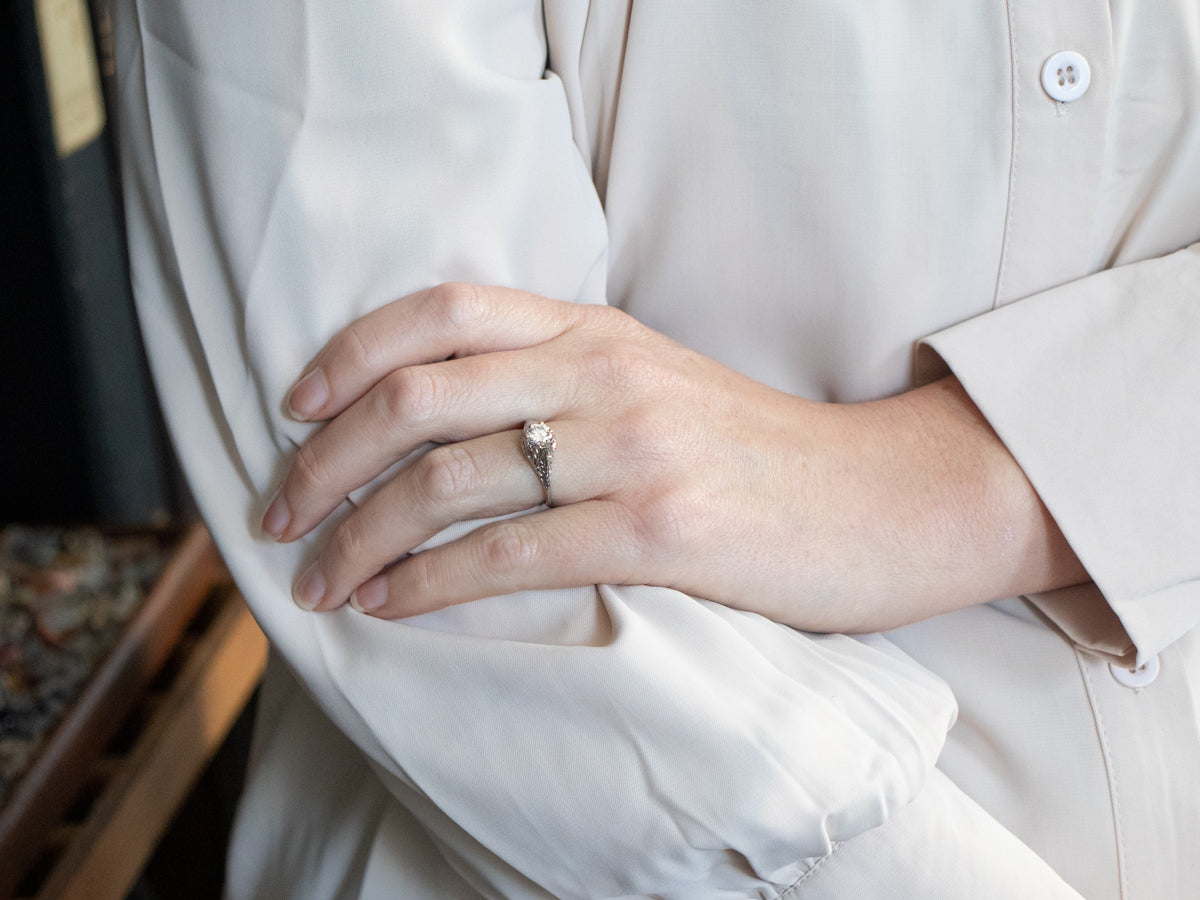 This exquisite white gold Art Deco Diamond Solitaire Engagement Ring is a timeless and classic choice. Featuring a shimmering diamond set in a lustrous white gold band, this ring is sure to make any bride-to-be feel extra special on her big day.