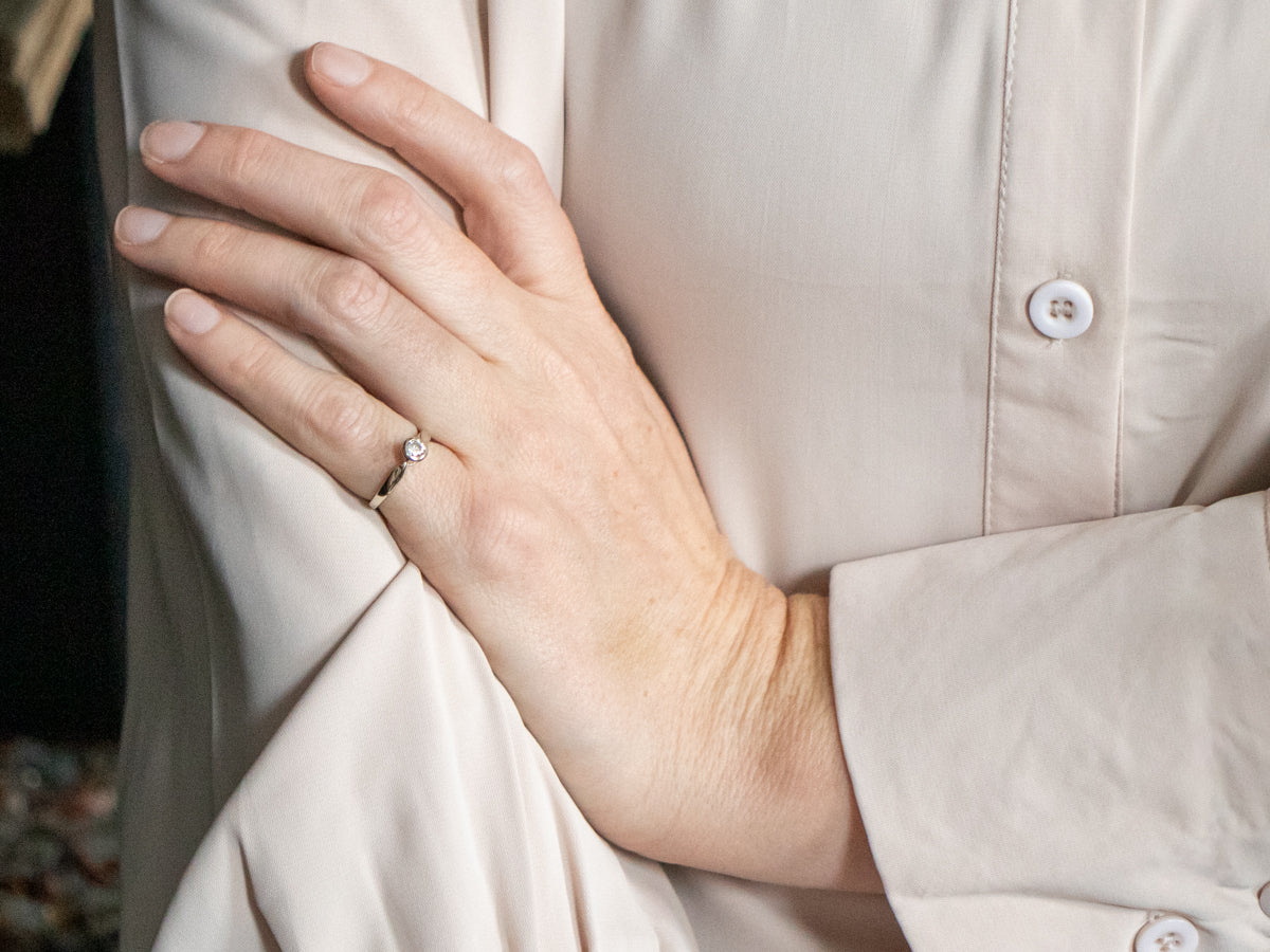This dazzling engagement ring is the perfect way to take your proposal to the next level. With its sleek design and shimmering bezel set diamond, it'll make your one-of-a-kind proposal sparkle and show your commitment to the one you love.