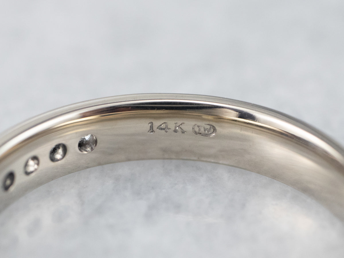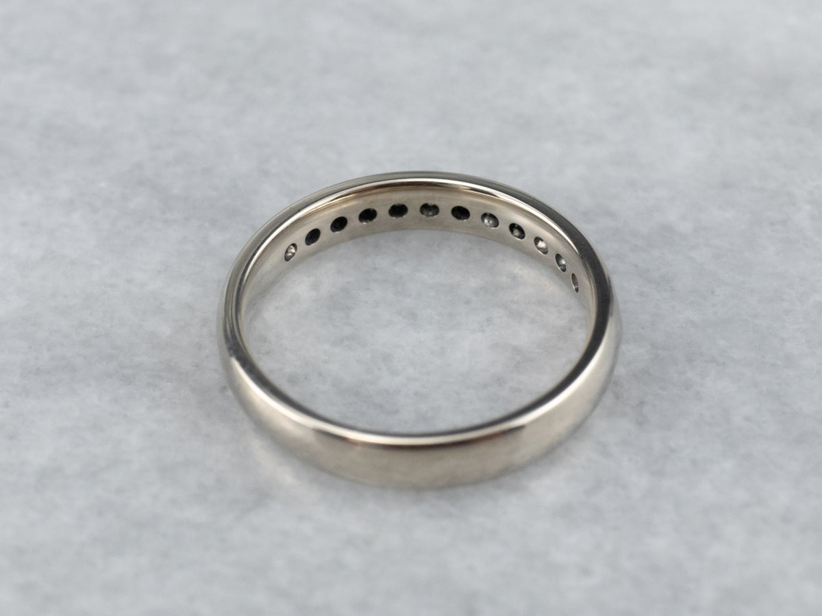 Metal: 14K White Gold Gem: 12 Diamonds totaling .36 Carats, H in Color, SI2 in Clarity Width of Band: 3.4 mm Height off Finger: 1.7 mm Ring Size: 5.75 Marks: "14K(TW)" Stamped on the inside band