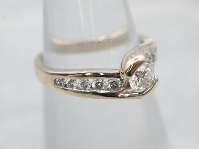 Metal: 14K White Gold Gem: Diamond .32 Carats, SI2 in Clarity, I in Color Gem Measurements: 4.1 mm, Round Accents: 10 Diamonds totaling .26 Carats, SI in Clarity, G-I in Color Ring Size: 5 Marks: "14KT" Stamped on the inside band