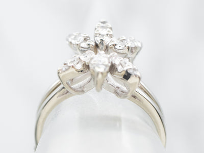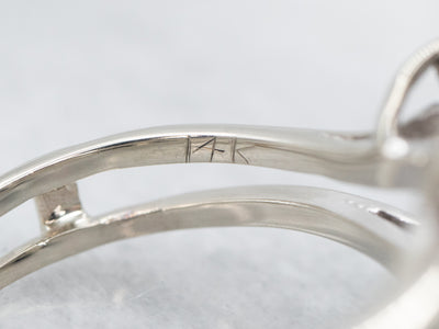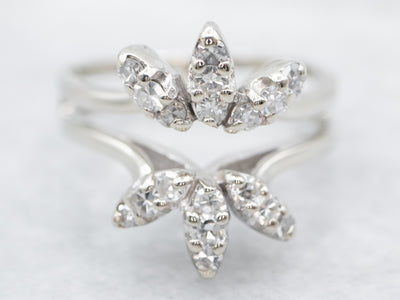 Metal: 14K White Gold Gem: 18 Diamonds totaling .52 Carats, G-H in Color, VS-SI in Clarity Width of Band: 16.3 mm Height off Finger: 7.3 mm Gap Measurements: 3.2 mm Ring Size: 7.75 Marks: "14K" Stamped on the inside band