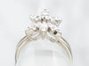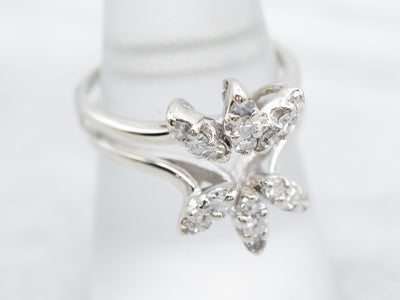 Crafted of bright gold and glittering diamonds, this vintage ring has a luxurious feel and a lovely, refined profile on the finger. Open in the center, this can be set with a solitaire gemstone ring of any color to create a spectacular cocktail-style frame for a simple ring.