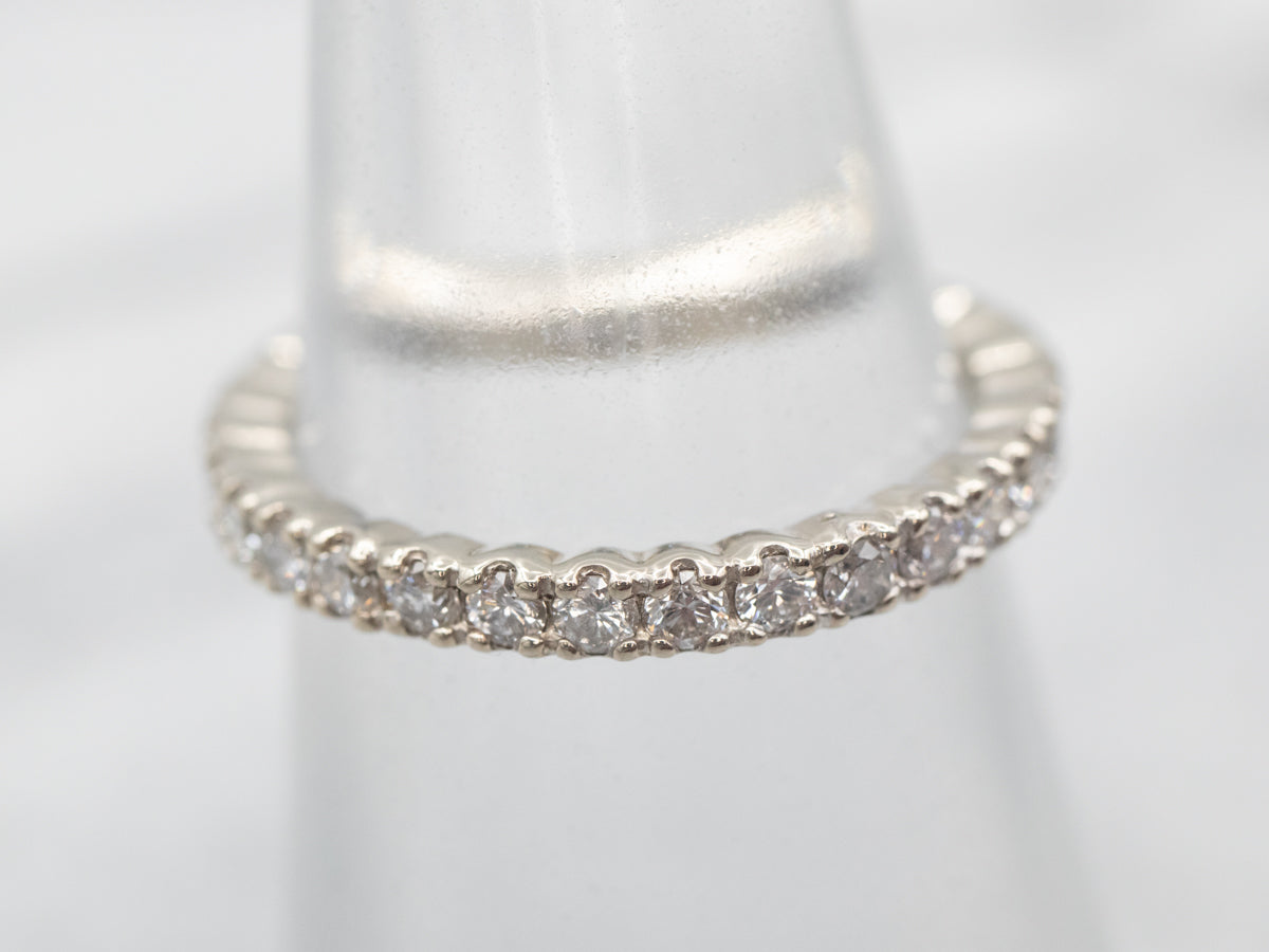 This band is crafted with white gold and set with diamonds for luxurious sparkle. Its timeless eternity band design makes it a classic choice for your special day. Perfect for a lifetime of memories, this ring is sure to shine for years to come.