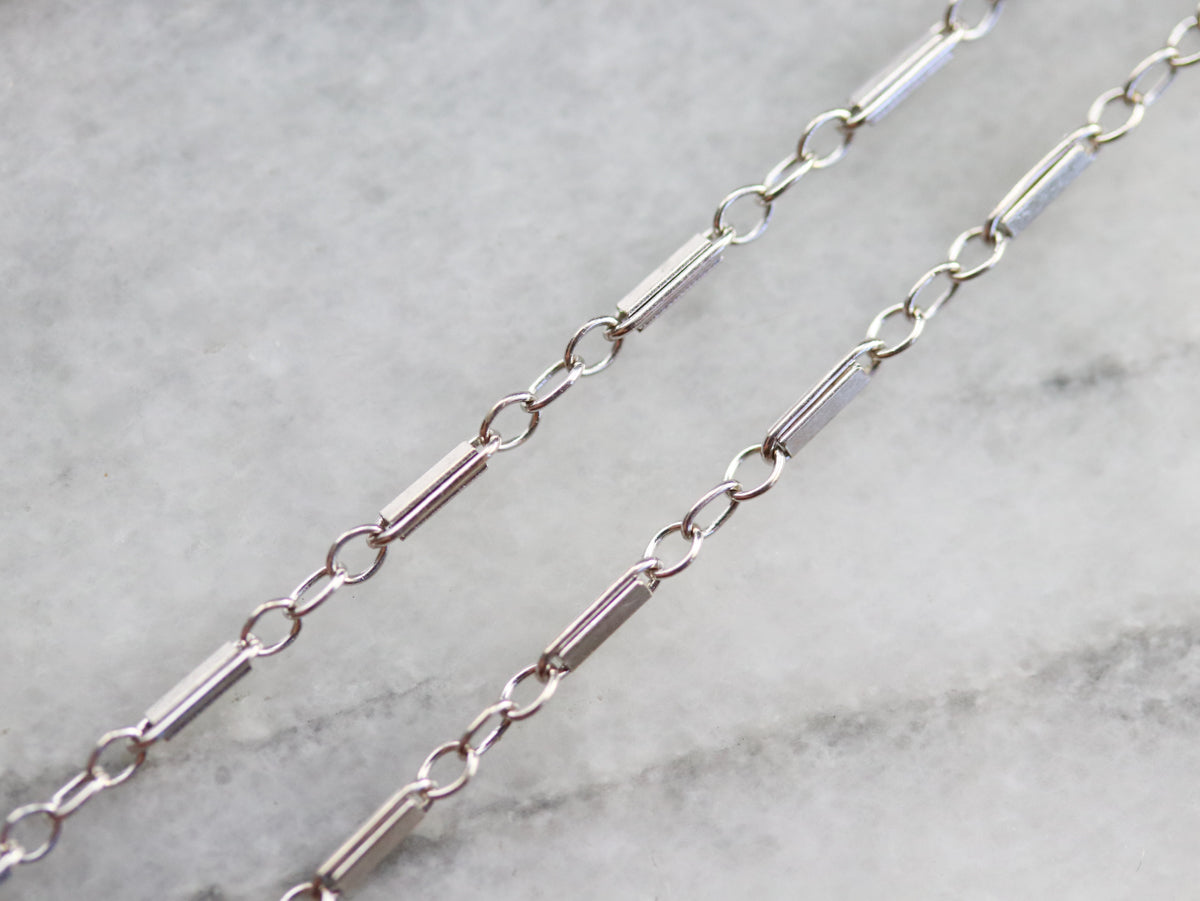 A scattering of high-quality diamonds gives this necklace a luxurious sparkle! The letter "W" is formed of scrolling white gold, with milgrain details giving texture and definition. Set onto a sleek bar link chain, this necklace is wonderfully polished, a stunning personalized piece!