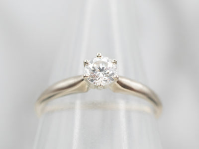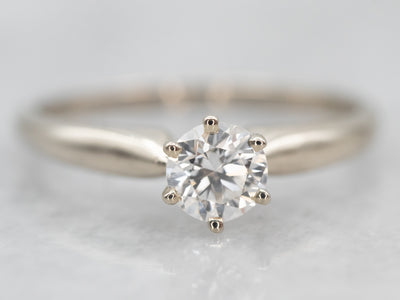 This classic solitaire engagement ring is the perfect way to make a statement of love and commitment. Crafted from white gold and featuring a timeless diamond solitaire, this beautiful ring will add luxury and sparkle to any ensemble.