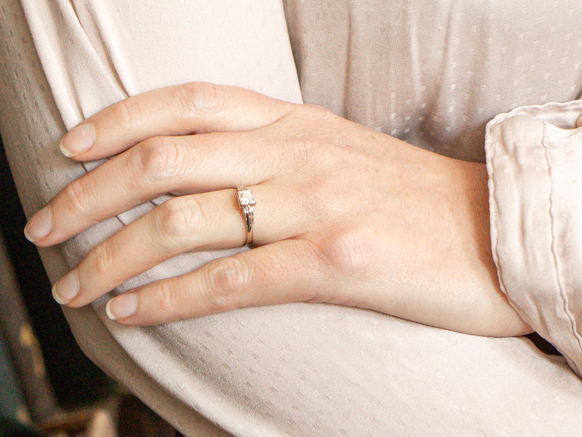 Vinatge White Gold Diamond Solitaire Engagement Ring