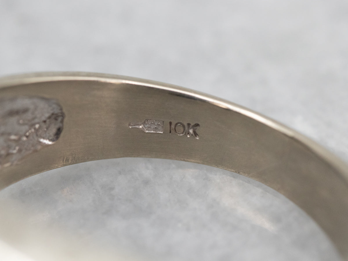 This bold ring features a gorgeous cushion cut east-west black onyx with diamonds on either side. Sizable and sturdy, this would make a great addition to any collection!