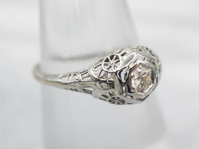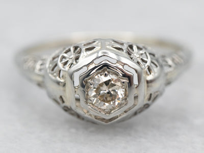 Art Deco European Cut Diamond Solitaire Engagement Ring