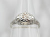 This classic Art Deco ring is an iconic addition to any jewelry trove. Boasting a gleaming white gold band and exquisite European Cut diamond setting, this stunning piece offers a subtle opulence for everyday wear or a special event.