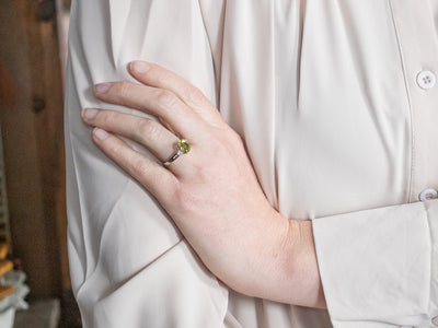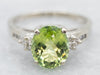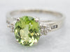 This green tourmaline is so pretty! Flashes of mint and undertones of lime green are complimented beautifully by the brightness of the polished white gold. Diamond accents add a touch of extra sparkle!