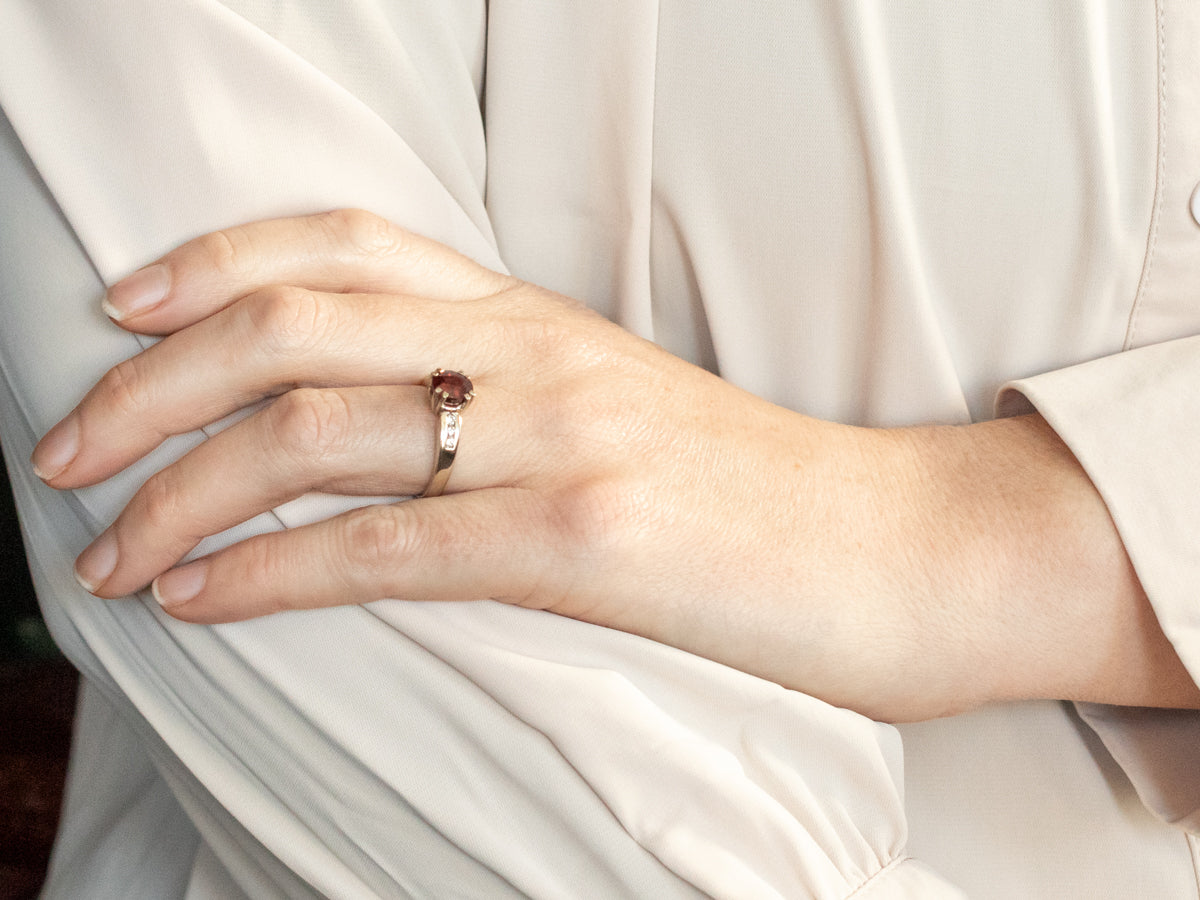 Modern Rhodolite Garnet Ring with Channel Set Diamond Accents
