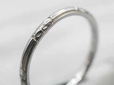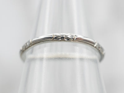 This vintage band features a pattern of Forget-Me-Not flowers along the top of the band. This is in great shape, very crisp in detail, and ready to wear with a variety of engagement rings.