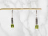 Metal: 14K White Gold, 18K White Gold Gem: 2 Peridot totaling 3.07 Carats Gem Measurements: 6.0 x 7.8 mm, Emerald Cut Measurements: 6 x 37 mm Marks: "14K:" Stamped on the findings