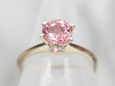 Metal: 10K White Gold Gem: Pink Tourmaline 1.57 Carats Gem Measurements: 7.4 mm, Round Ring Size: 9.75 Marks: "10K" Stamped on the inside band