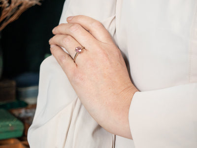This ring is the perfect way to show your love. The solitaire design ensures a timeless elegance, while the white gold and pink tourmaline create a truly captivating piece of jewelry. Show that special someone your devotion with this special ring.