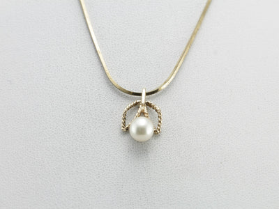 Utterly darling! This will make a wonderful gift for a bridesmaid or flower girl, a gift she can treasure and wear again for years to come! A bright pearl forms the blossom of a flower here, where the leaves are made of gold.
