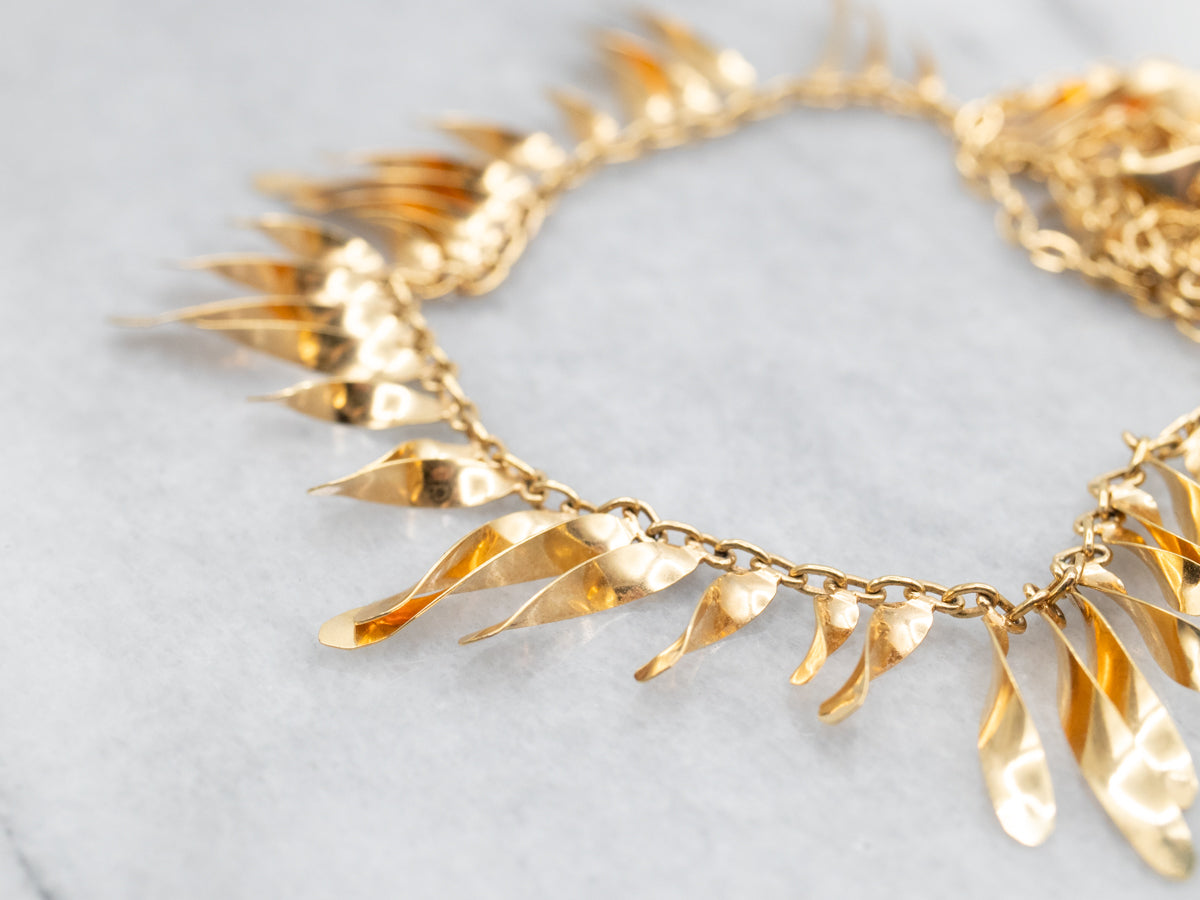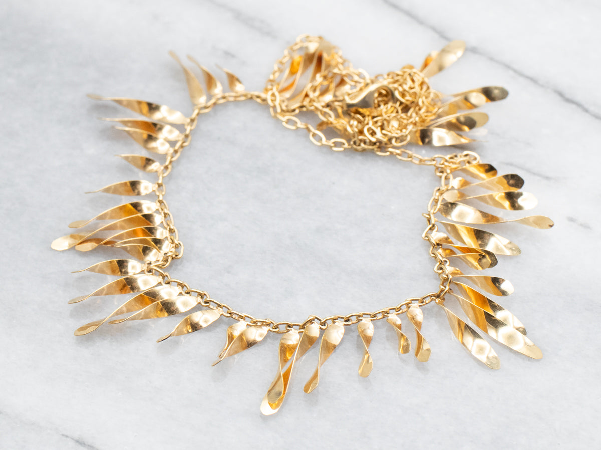 Made with durable yellow gold, this necklace can be easily adjusted for the perfect fit. The fringe design adds a playful touch, while the lobster clasp ensures a secure hold. A must-have for any stylish wardrobe!