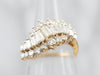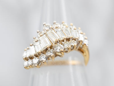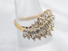 This fantastic bypass-style cluster ring is lovely, balanced in such a way as to be very comfortable on the hand, and versatile enough to transition from day to evening. The diamonds are bright, lovely glittering lights surrounded by highly polished yellow gold!