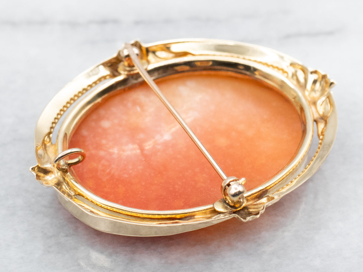 Metal: 14K Yellow Gold Gem: Cameo Gem Measurements: 27.3 x 35.3 mm, Oval Measurements: 35 x 43 mm Marks: "ZZ14K" Stamped on the reverse