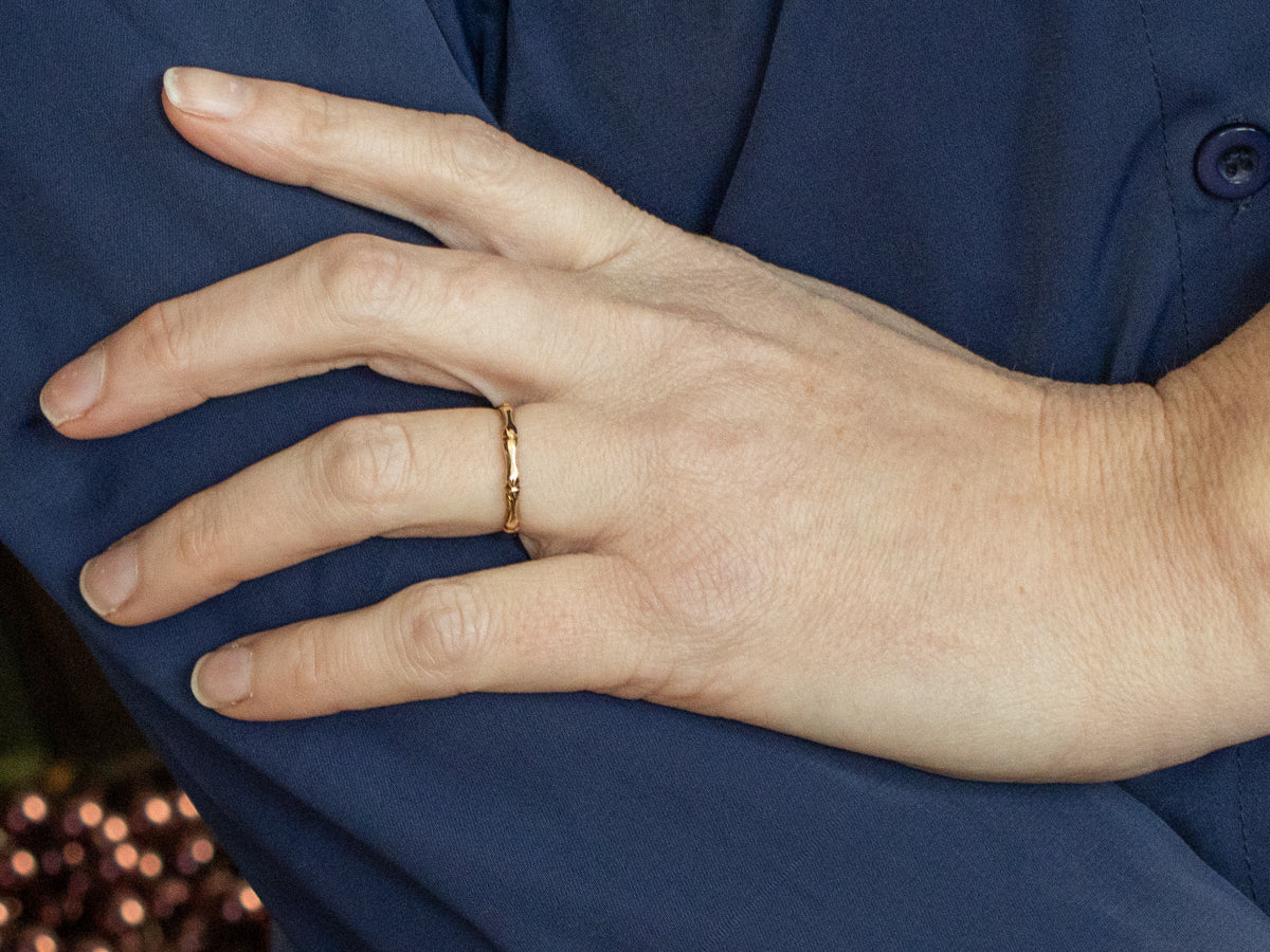 Crafted in lustrous 14K yellow gold, this exquisite band showcases an intricately carved bamboo pattern that captures the natural elegance of this timeless botanical motif. The delicate detailing brings sophistication to any hand, while the refined proportions ensure a comfortable, graceful presence.