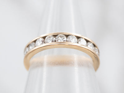 This exquisite band is the perfect accessory for your special day. Crafted from high quality yellow gold and showcasing channel set diamonds, it will sparkle for years to come. Make a statement with this luxurious wedding band.