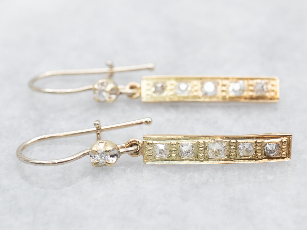 Get ready to shine with these earrings. Made with stunning yellow gold and accented with sparkling Old Mine Cut diamonds, these drop earrings will add a touch of elegance to any outfit. Perfect for a night out or dressing up a casual look.