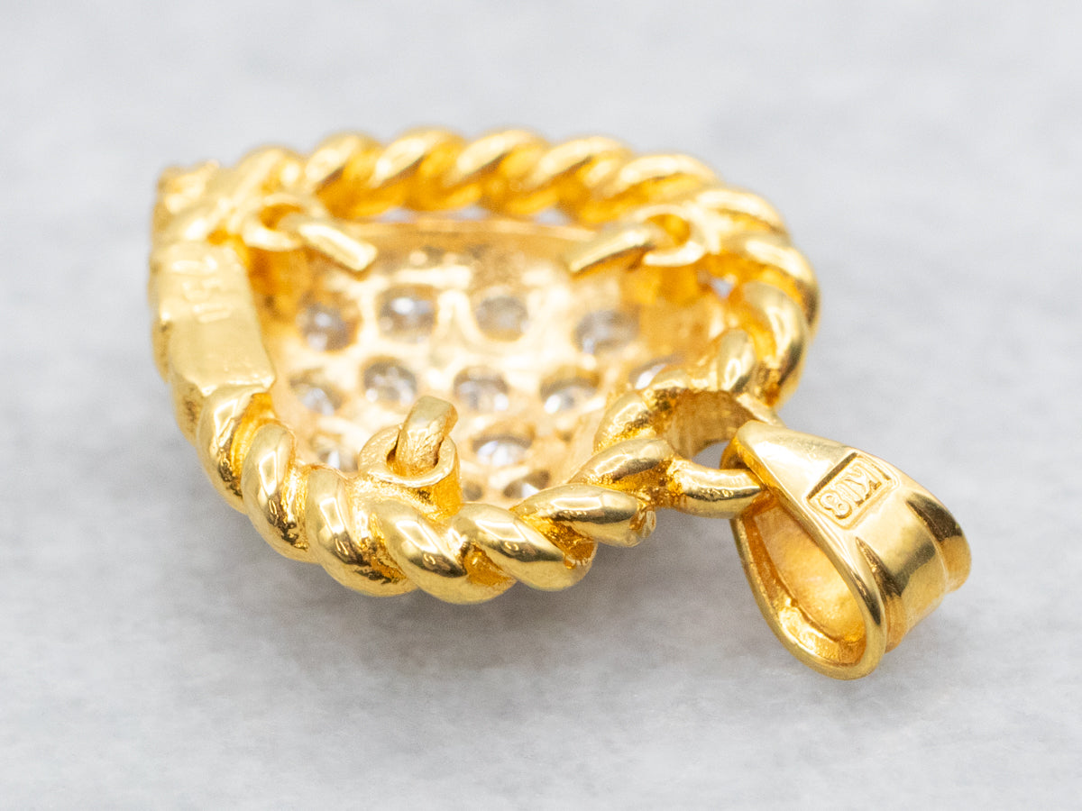 Metal: 18K Yellow Gold Gem: 17 Diamonds totaling .28 Carats, SI-I in Clarity, F-H in Color Gem Measurements: 1.8 mm, Round Measurements: 15 x 19 mm, with bail Marks: "750" Stamped on the reverse
