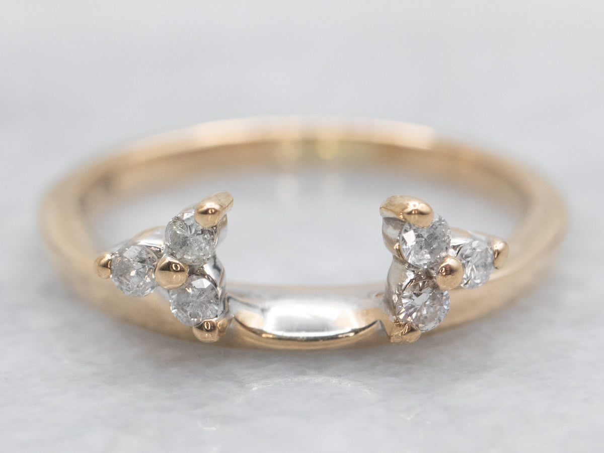 Jazz up your engagement ring with this enhancer band! Shimmer with confidence and style, featuring dazzling diamonds and a classic gold band. Perfect for adding a touch of sparkle to any solitaire ring. Upgrade your marriage game with this enhancer.