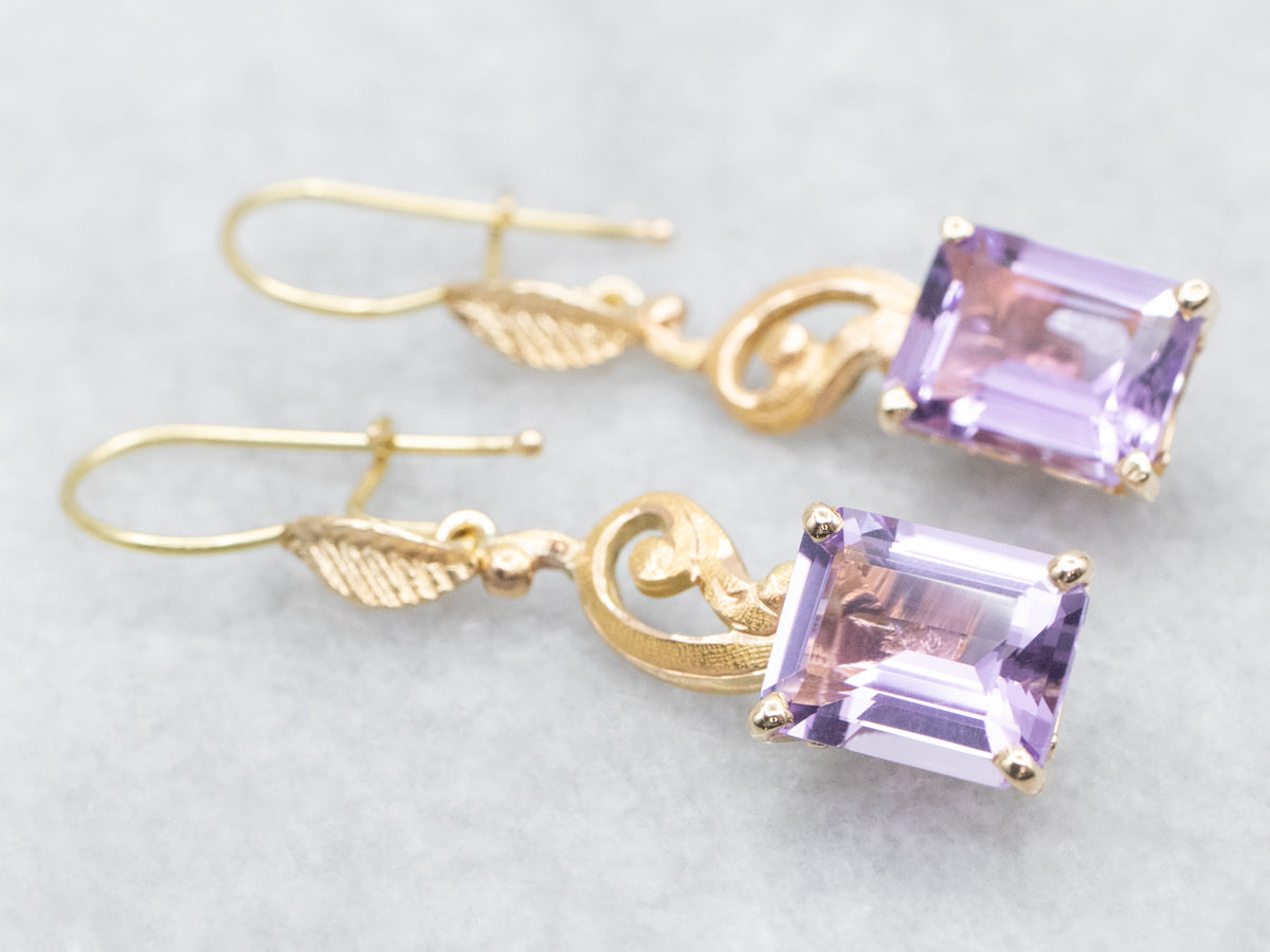 These drop earrings are the perfect splash of drama and elegance! The yellow gold gives the amethyst stone a regal touch, while the emerald cut design turns any outfit into a showstopper. Get ready to be noticed!