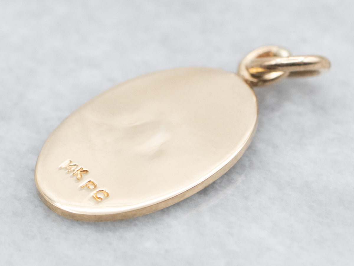 Metal: 14K Yellow Gold Measurements: 13 x 29 mm, with bail Marks: "14K PC" Stamped on the reverse