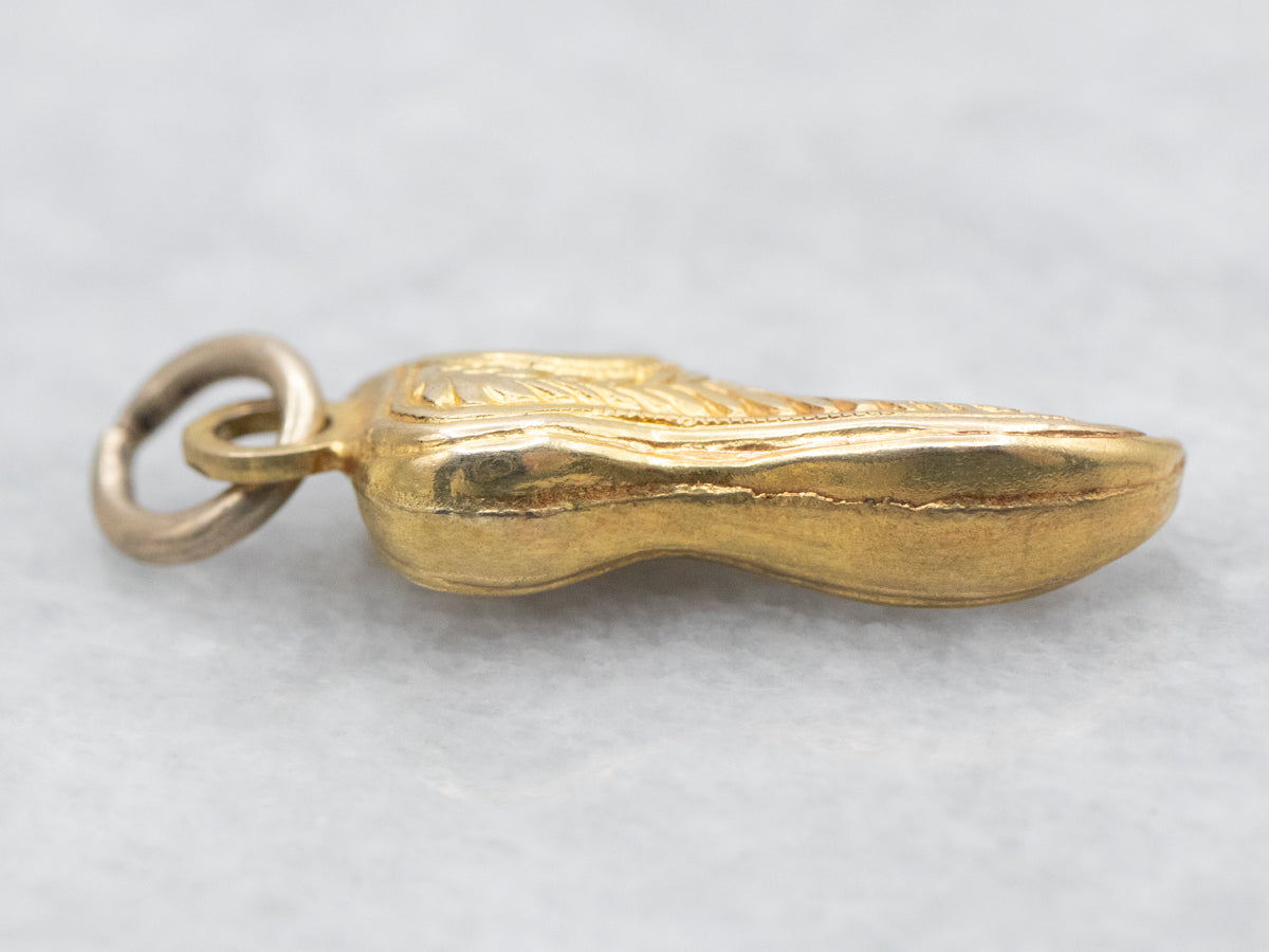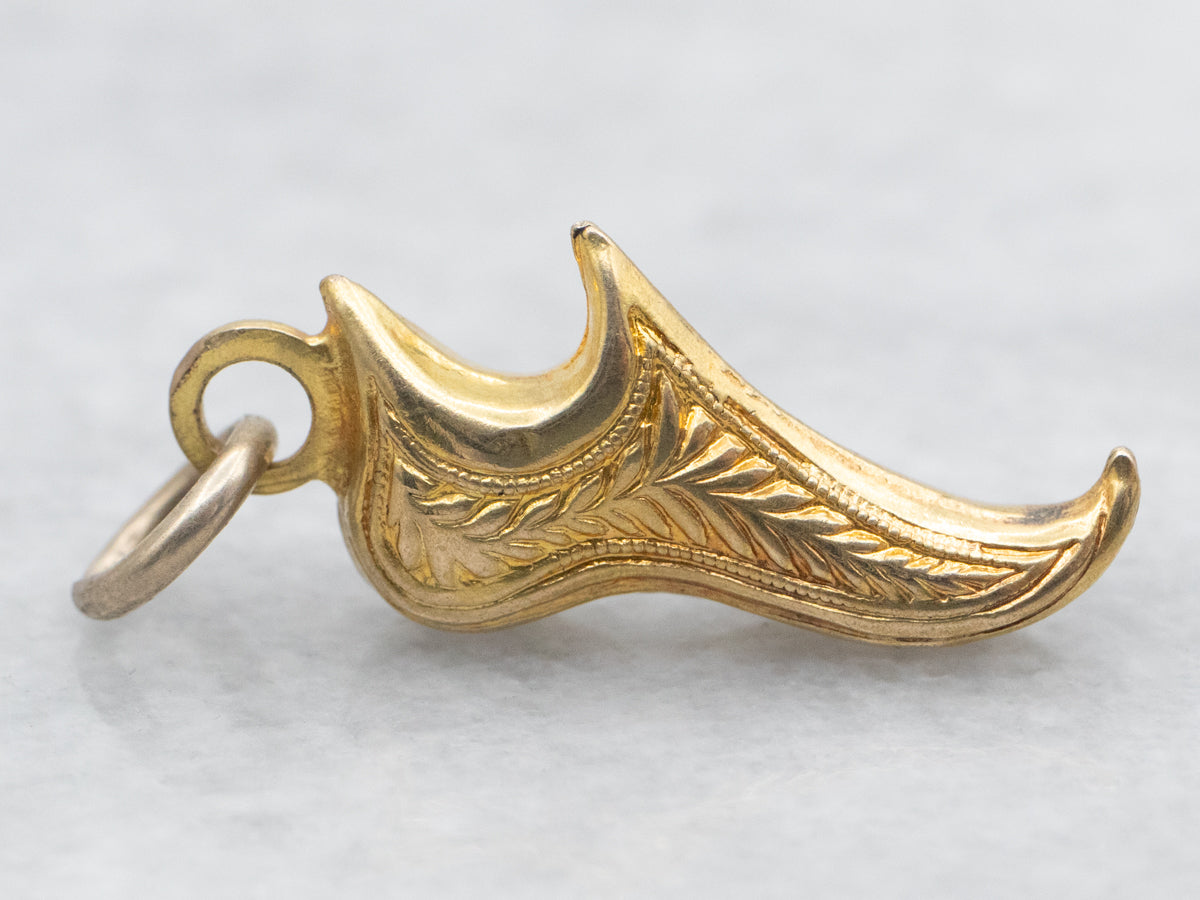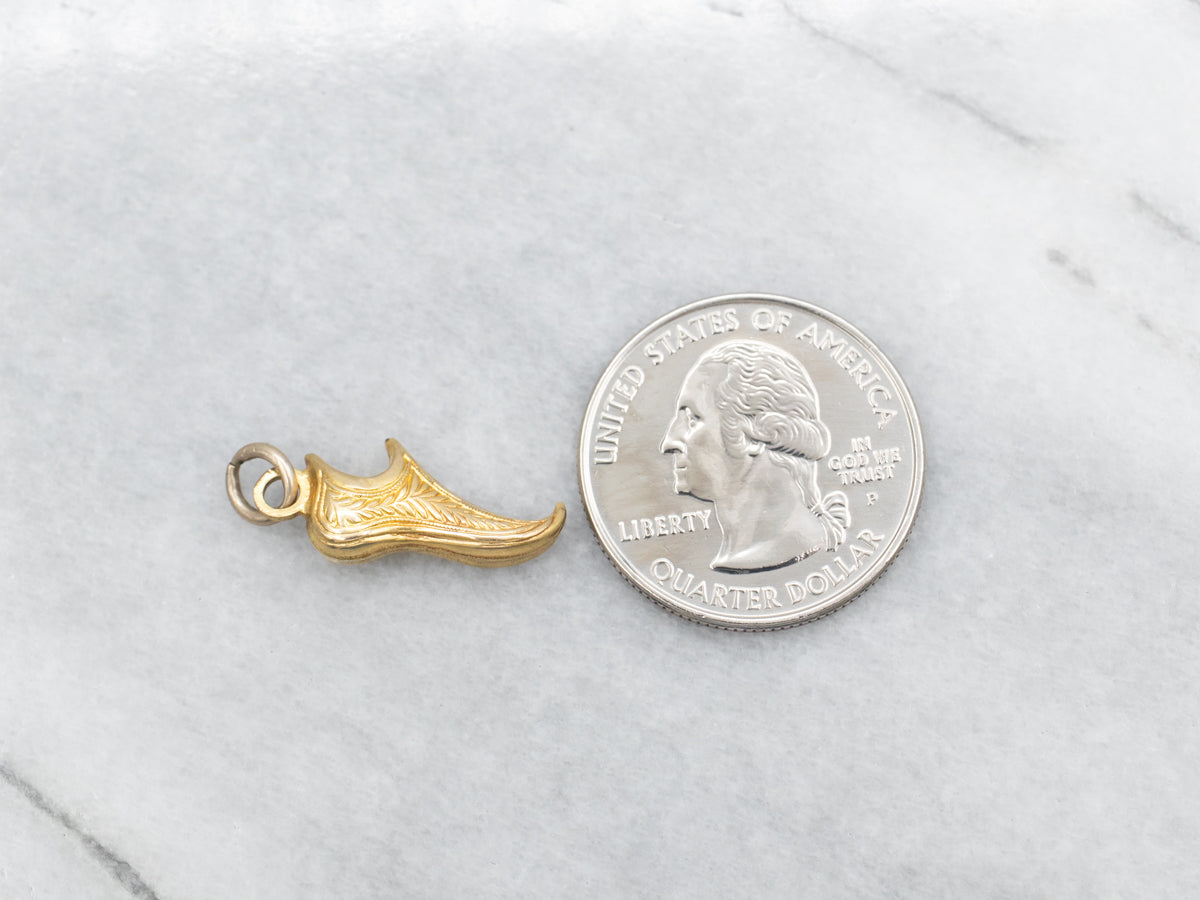 A dazzling look for your favorite bracelet! This enchanting yellow gold charm features an etched genie shoe, adding a touch of magic and whimsy to your collection!