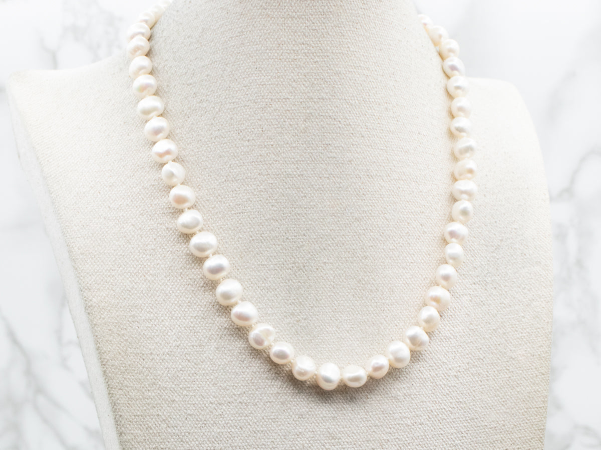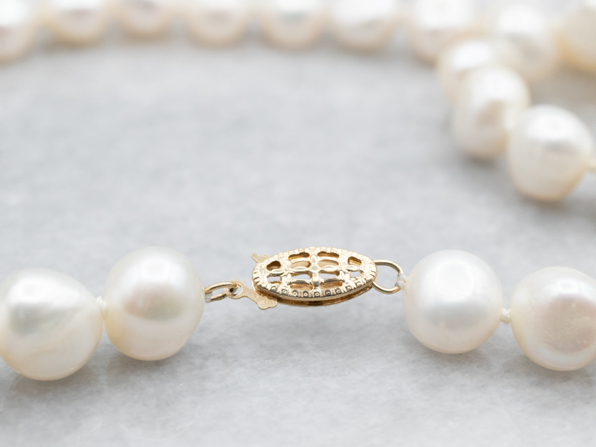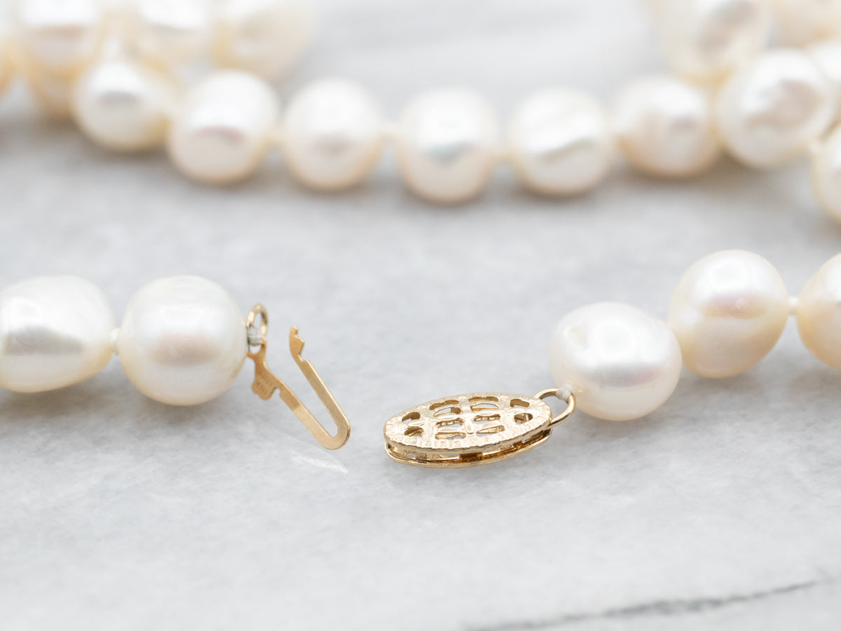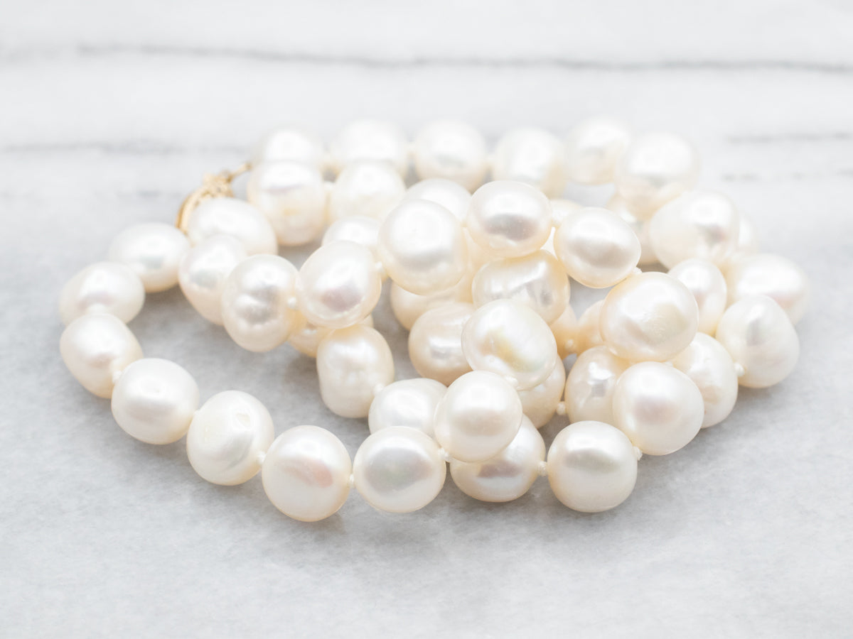Metal: 14K Yellow Gold Gem: Freshwater Pearls Gem Measurements: 7.3 x 9.1 mm, Natural Shape Length: 18 Inches Marks: "14K JCM" Stamped on the clasp
