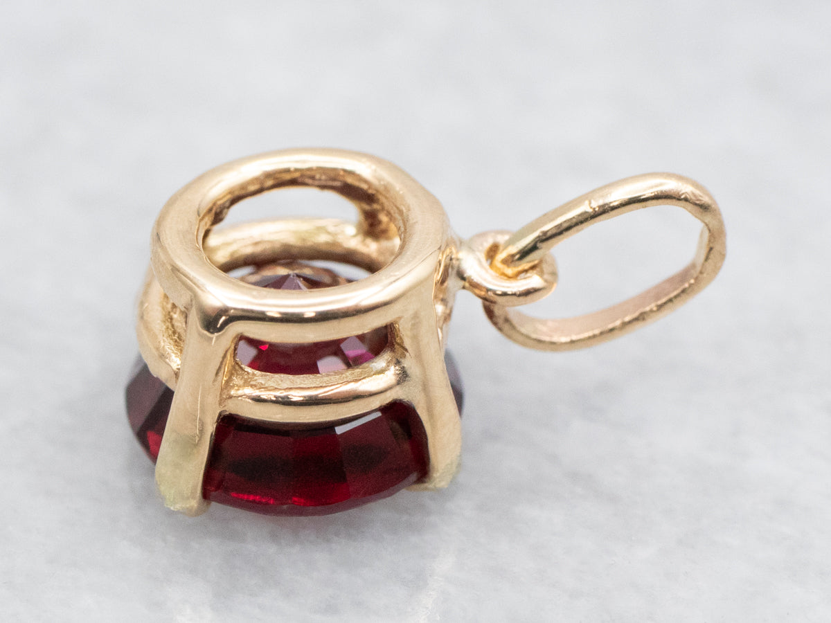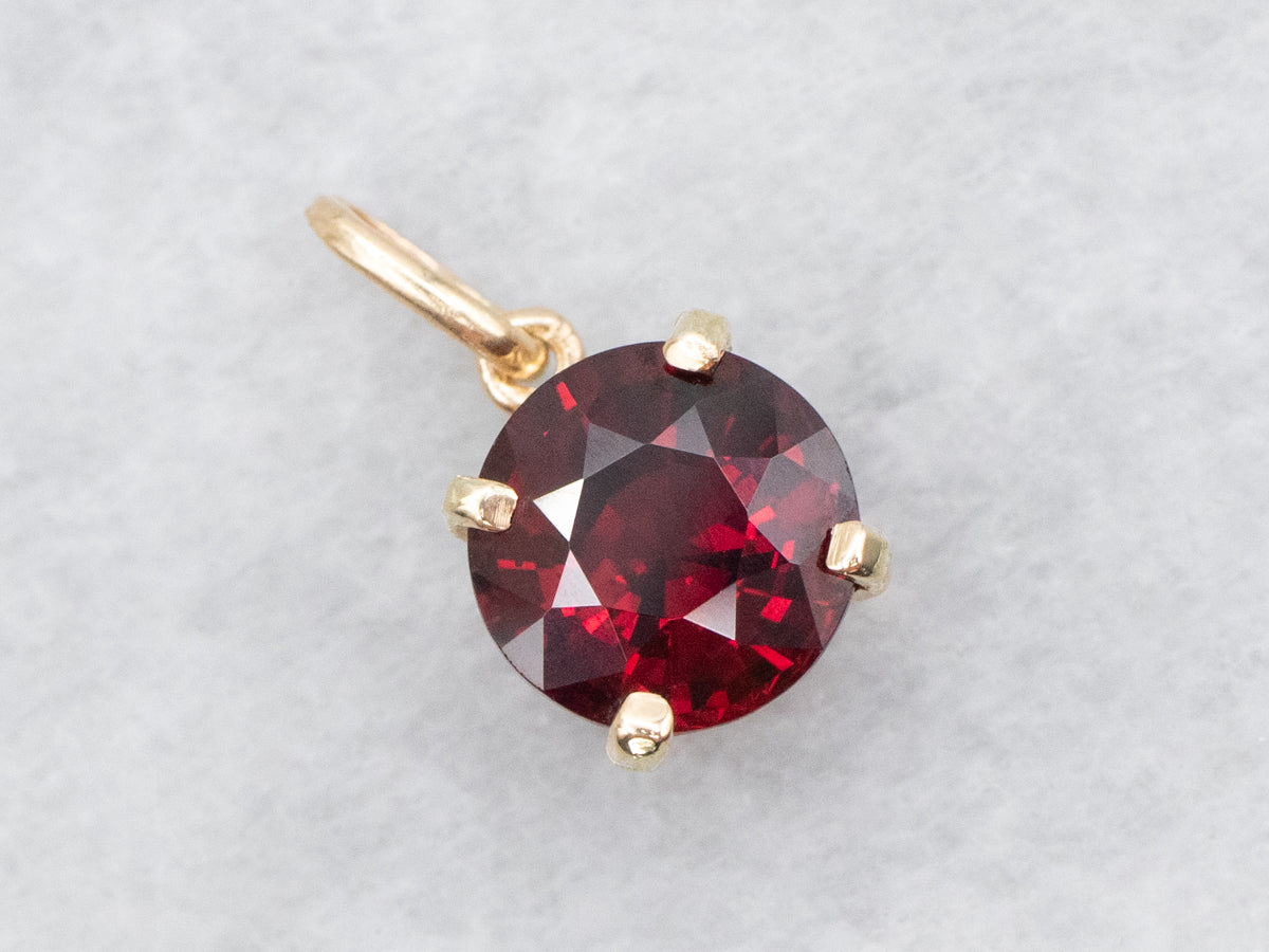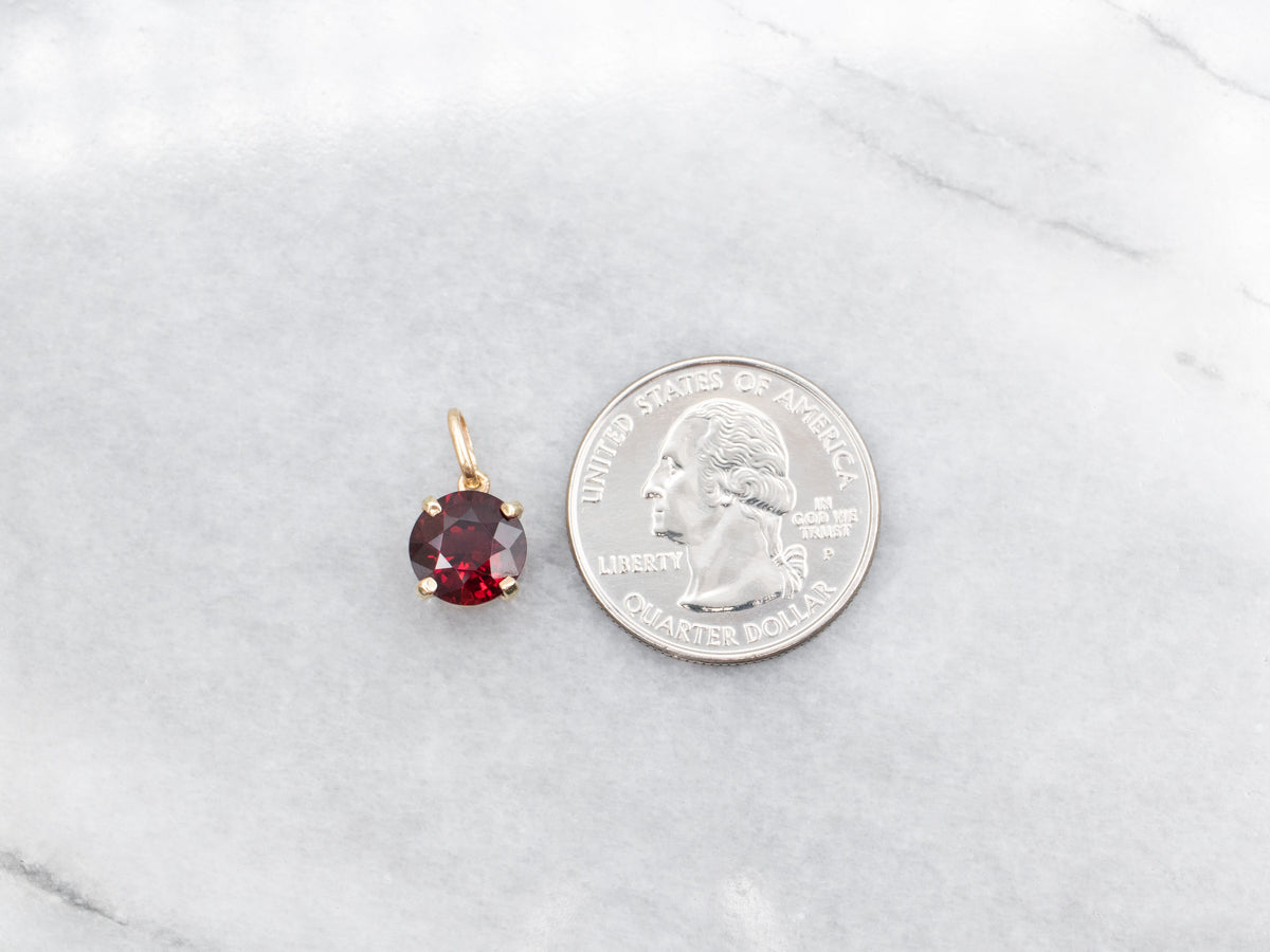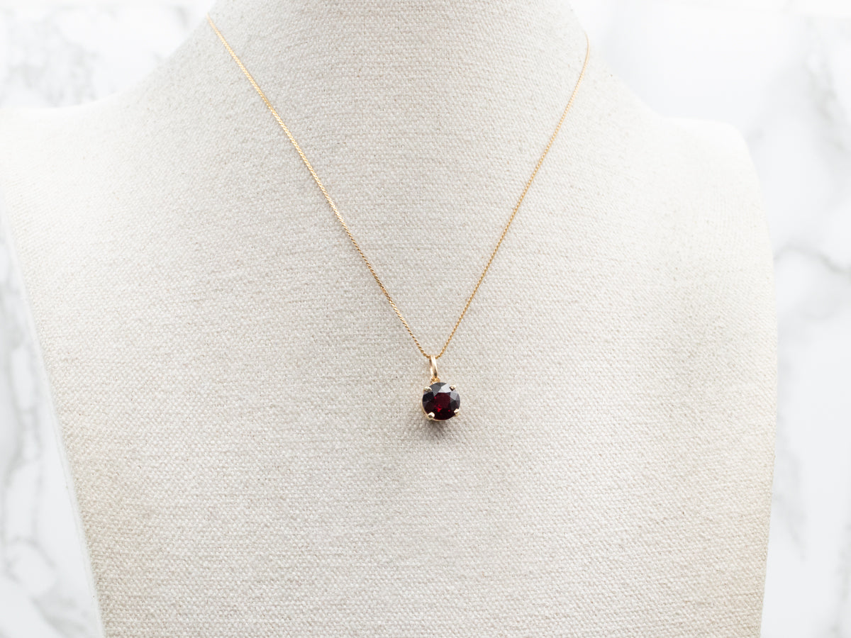 Crafted in stunning yellow gold, this solitaire pendant showcases a brilliant round cut garnet. Elevate any look with this timeless piece, featuring a classic design and rich color. Add a touch of sophistication to your wardrobe with this elegant pendant!