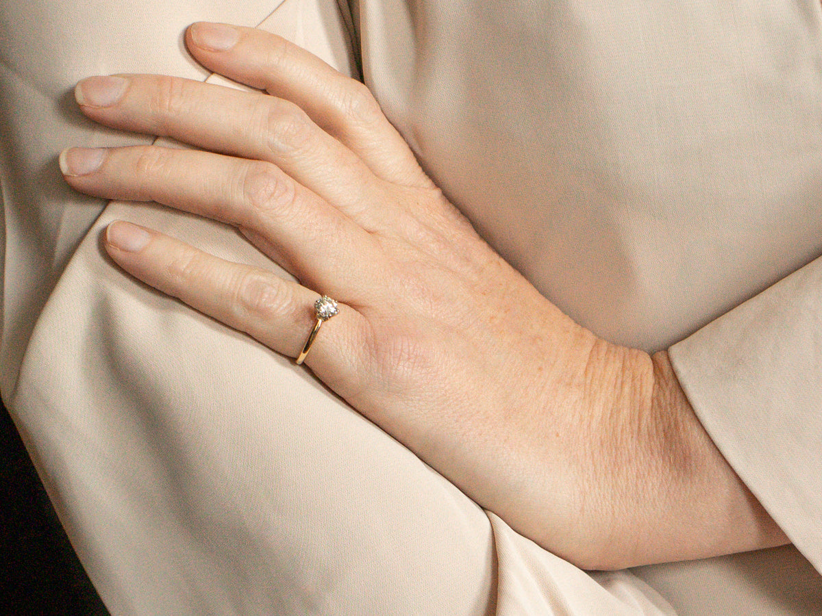 Introducing this exquisite engagement ring. Expertly crafted in gleaming yellow gold, this stunning ring boasts a GIA-certified diamond set in a classic solitaire six-prong white gold head. Elevate your love story with this ultimate symbol of luxury and commitment.