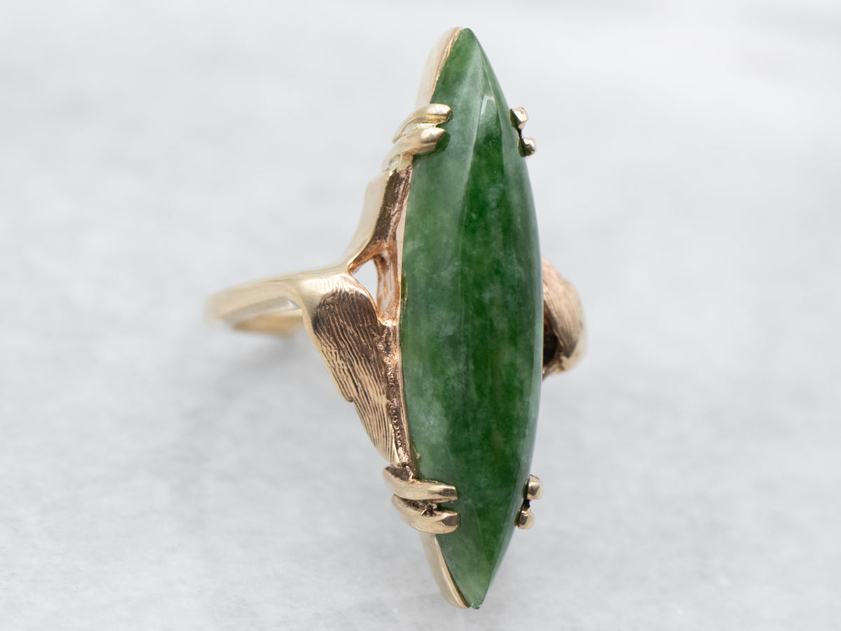 Yellow Gold Marquise Cut Jade Solitaire Ring