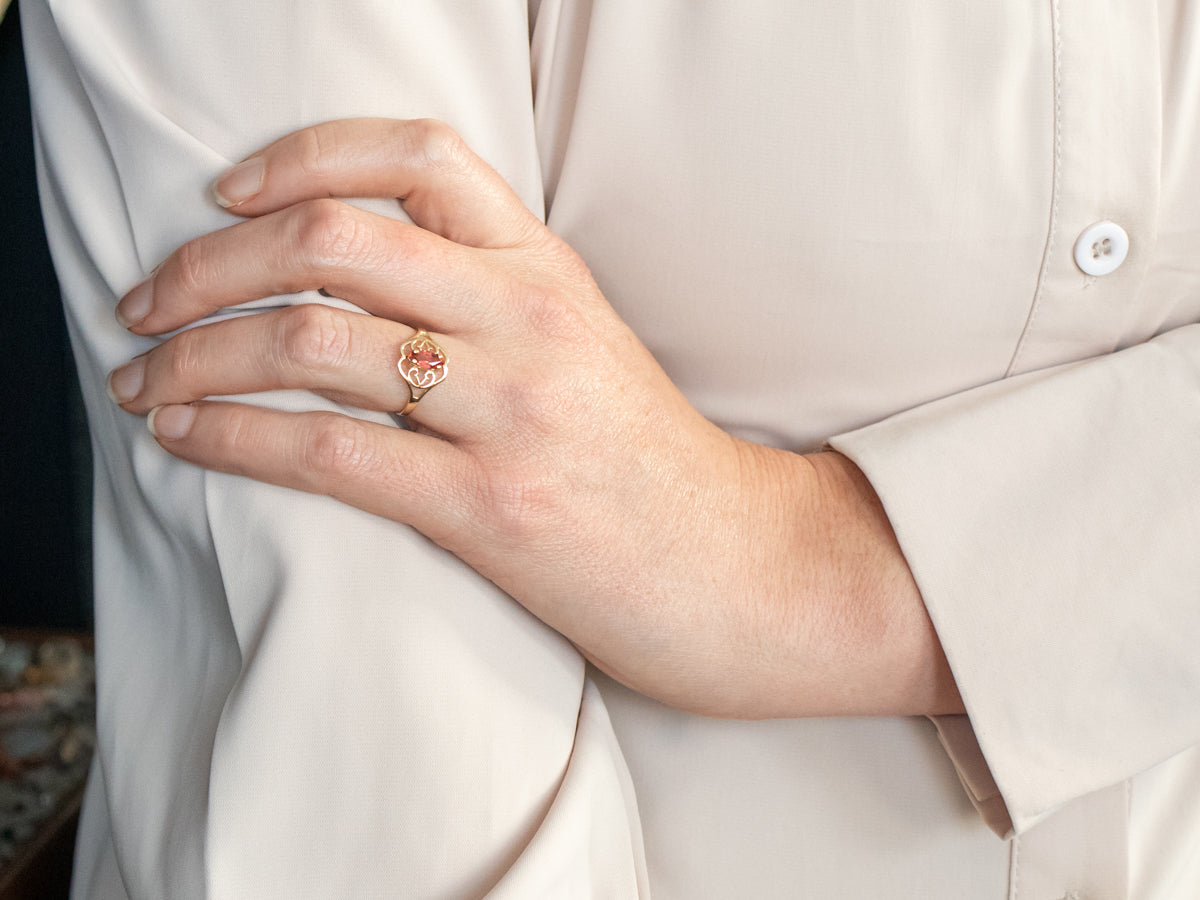 This ring is a vision in yellow gold! Its marquise cut pink sapphire is the perfect marriage of modern and classic style. Whether you're popping the question or simply treating yourself, this stunning solitaire ring will have you feeling all the sparkles!
